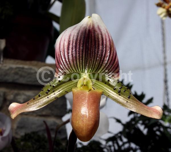 Botanical name: Paphiopedilum superbiens x liemianum